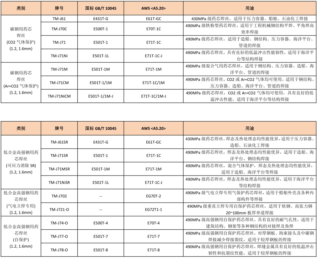 碳钢、低合金高强钢药芯焊丝